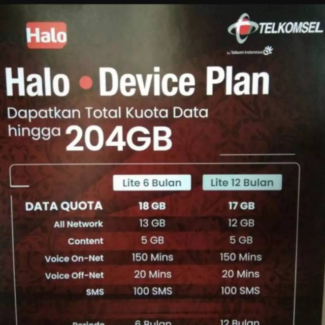 Tambahan kartuHalo - Paket Internet Telepon dan SMS Telkomsel. Kartu Halo juga punya paket SMS yang sudah berisi paket nelpon paket. 16 GB 24 GB Per Bulan Jumlah kuota 16 GB Bonus kuota 24 GB Masa berlaku 30 Hari Rp 500000 5.
