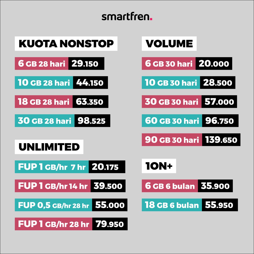 Paket data smartfren murah. Ada 9 paket internet murah Smartfren yang ditawarkan berikut kami urutkan paket internet harian Smartfren mulai dari masa aktif terlama dan harga termurah. Beli Paket Data Smartfren Murah di Kioser. Paket Smartfren Unlimited memberimu akses internet tanpa batas kuota namun ada batas wajar.